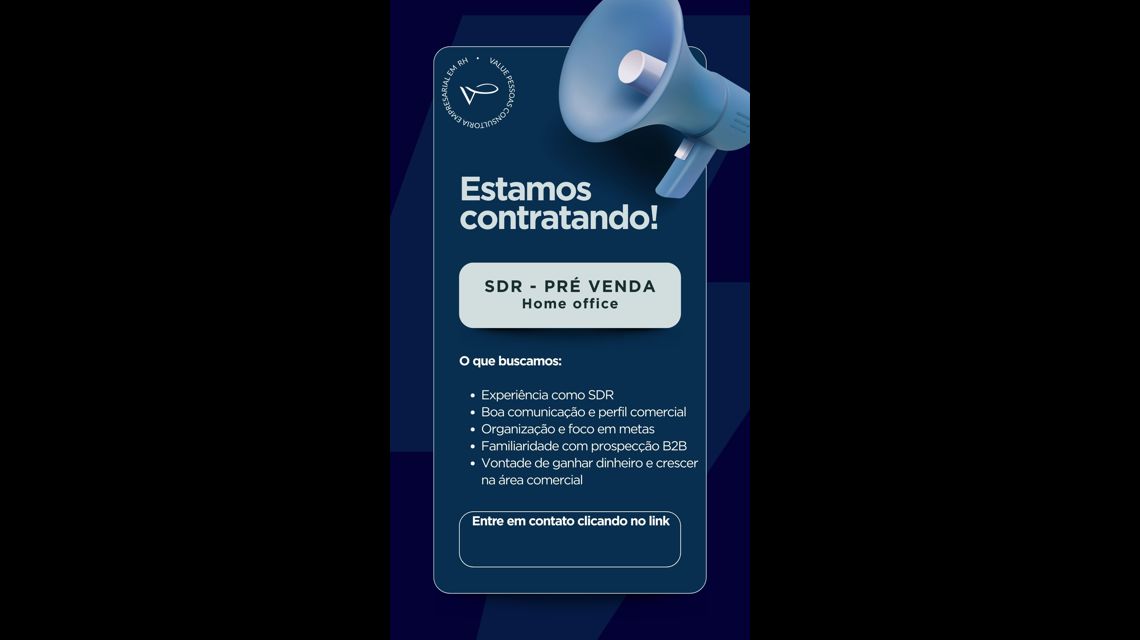 Você será responsável por abrir oportunidades comerciais para nossa consultoria em gestão de pessoas, recrutamento e seleção estratégico, implantação de RH, cultura organizacional e etc. Seu papel é identificar e abordar empresas com potencial, qualificar o interesse e agendar reuniões de diagnóstico para o time especialista conduzir a venda consultiva.